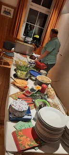 Pünktlich um 9 Uhr legten wir dann los mit den fleißigen Proben und hatten dabei auch immer wieder Spaß! Natürlich gabs stärkende Pausen - der Tisch war reich gedeckt mit Butterbrezeln aus der Vereinskasse sowie allerlei Feinem und Deftigem aus den Backstuben unserer Sängerinnen - Danke allen dafür!!! 😋